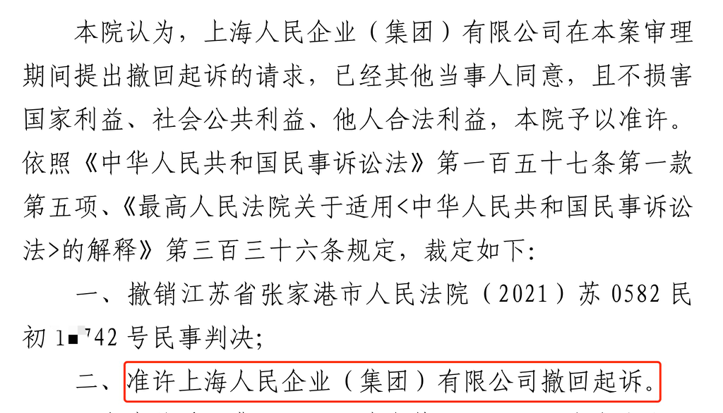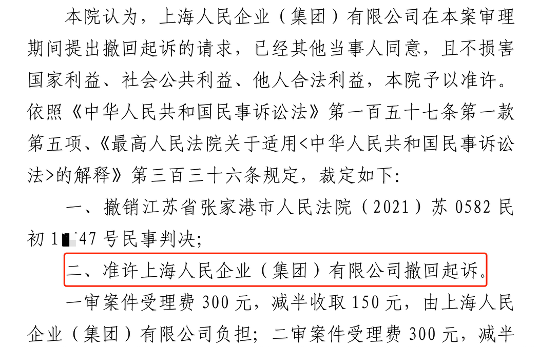 铜陵胜诉佳讯 | 人民企业系列案苏州六案上海人民公司撤诉