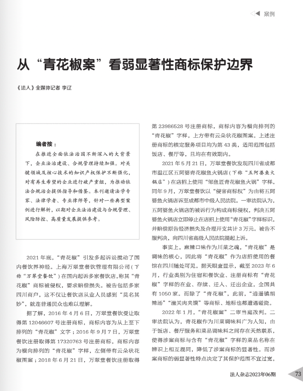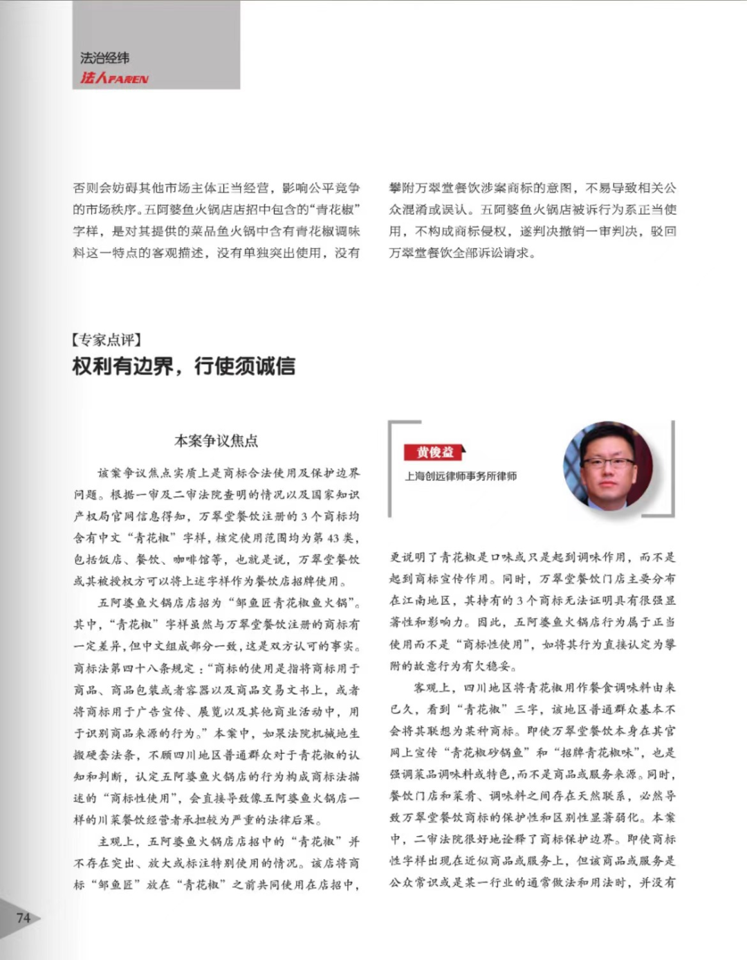 铜陵辉知简讯 | 辉知队黄俊益律师应“法治日报”旗下杂志邀请,就“青花椒”案发表专家点评